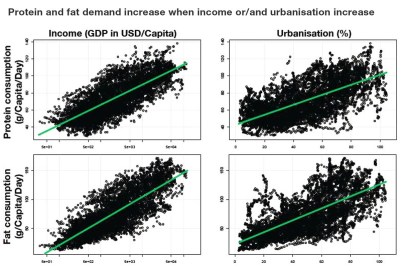 Figure 2: Protein and fat demand increase when income or/and urbanisation increase (1950 to present, all countries).