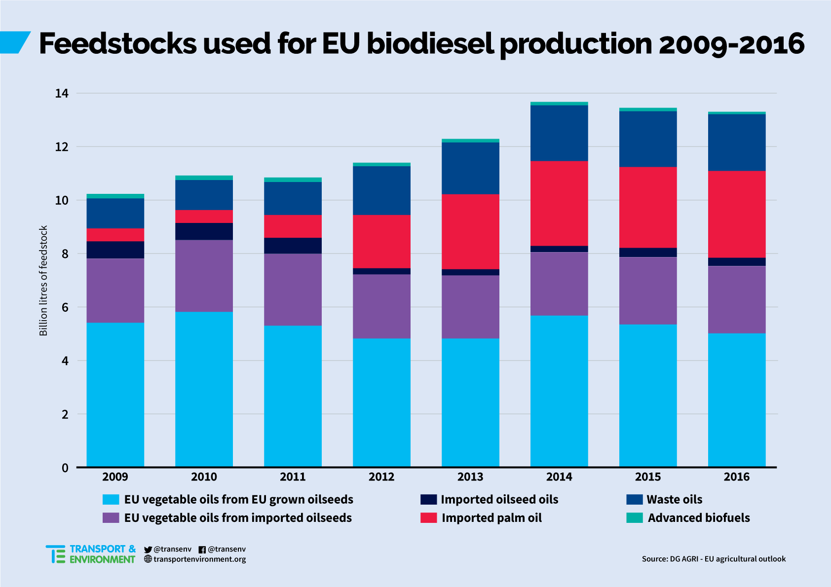 The main oil crops of the European Union are rapeseed and sunflower. Rapeseed is dominant, especially in France, Germany, and Poland. Among big producers of biodiesel, France and Germany are the only countries to use rapeseed as main feedstocks. It is much more expensive than palm oil and soybean oil, but rapeseed plays an important role in the agricultural politics of the two countries. In 2003, France and Germany established fiscal policies promoting biodiesel. It immediately boosted European consumption of domestic rapeseed, but it also pushed up imports of palm oil, which increased by 3.1% for every 1% rise in the price of rapeseed oil. After 2008, even though these fiscal tools were ended, industrial consumers continued importing palm oil. Palm oil had become, and remains, a formidable competitor for the European rapeseed oil.